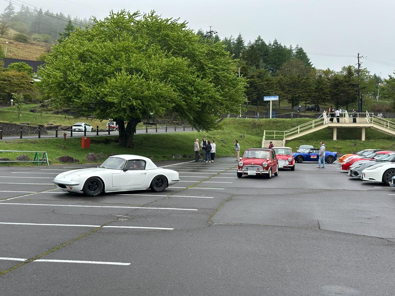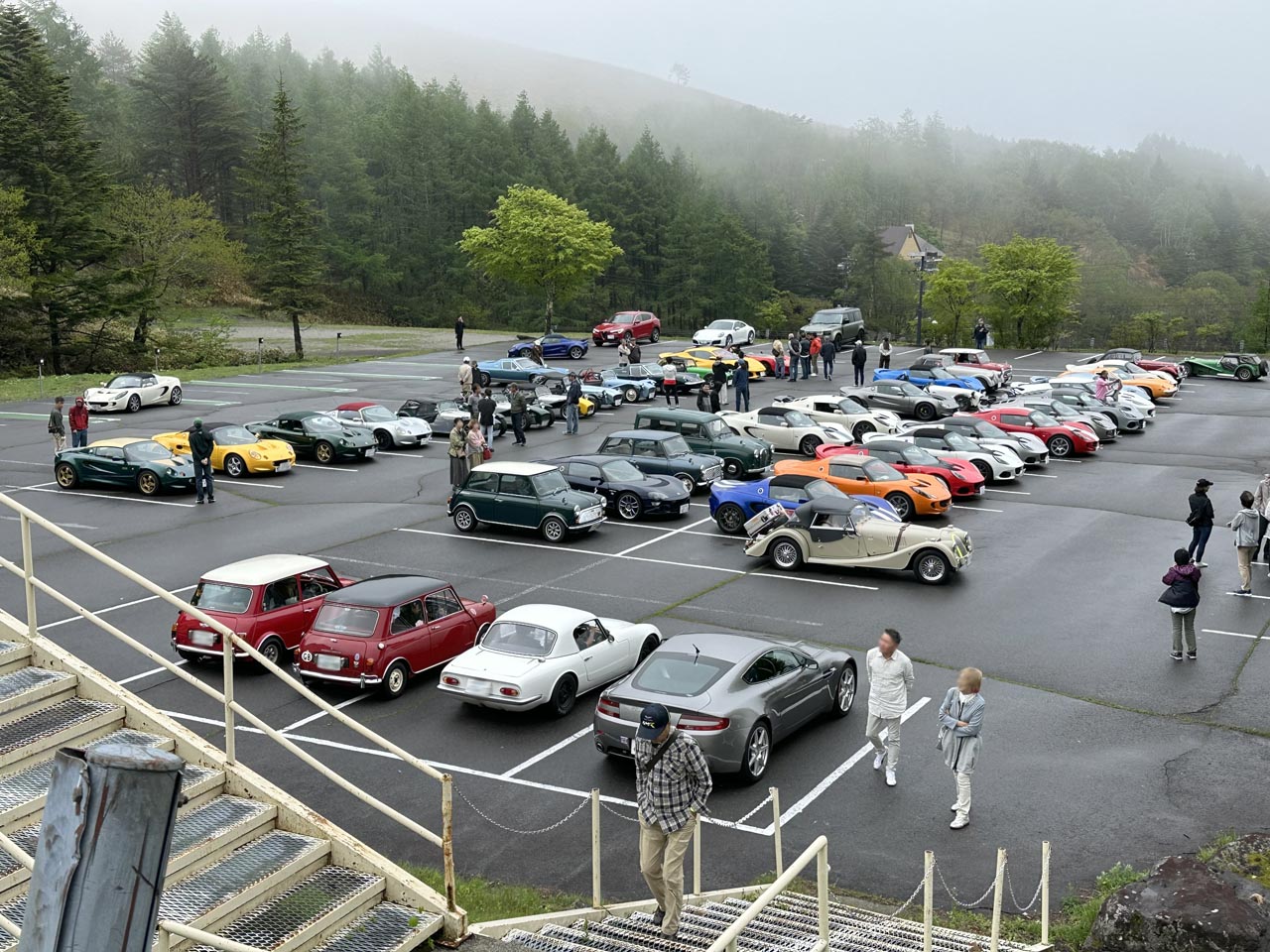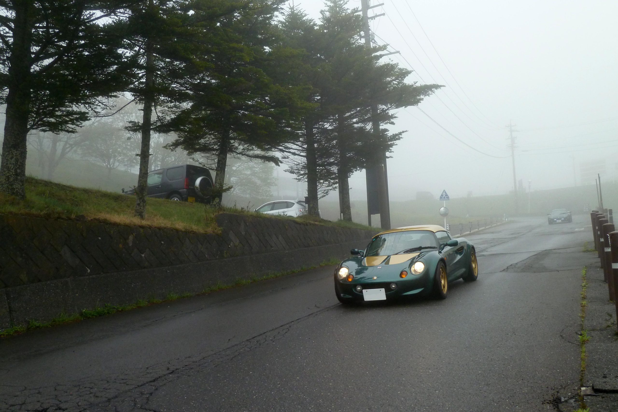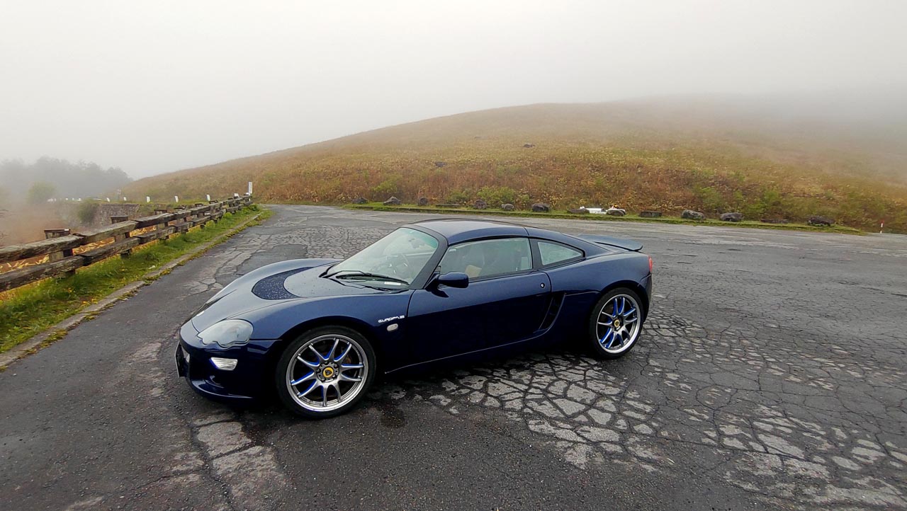 駐車場に到着したY.W.さんELISE Mk1。まだかなり濃い霧が立ち込めています。 Photo:R.M.