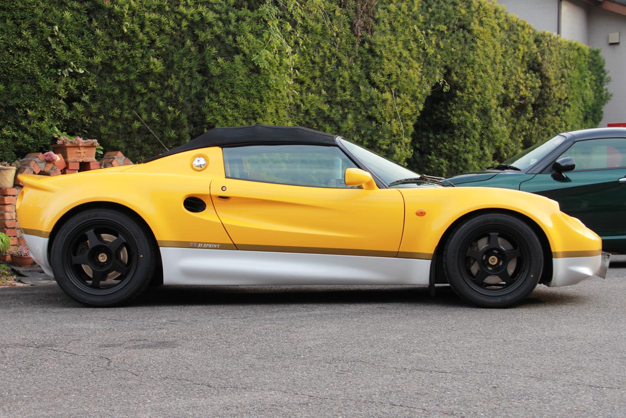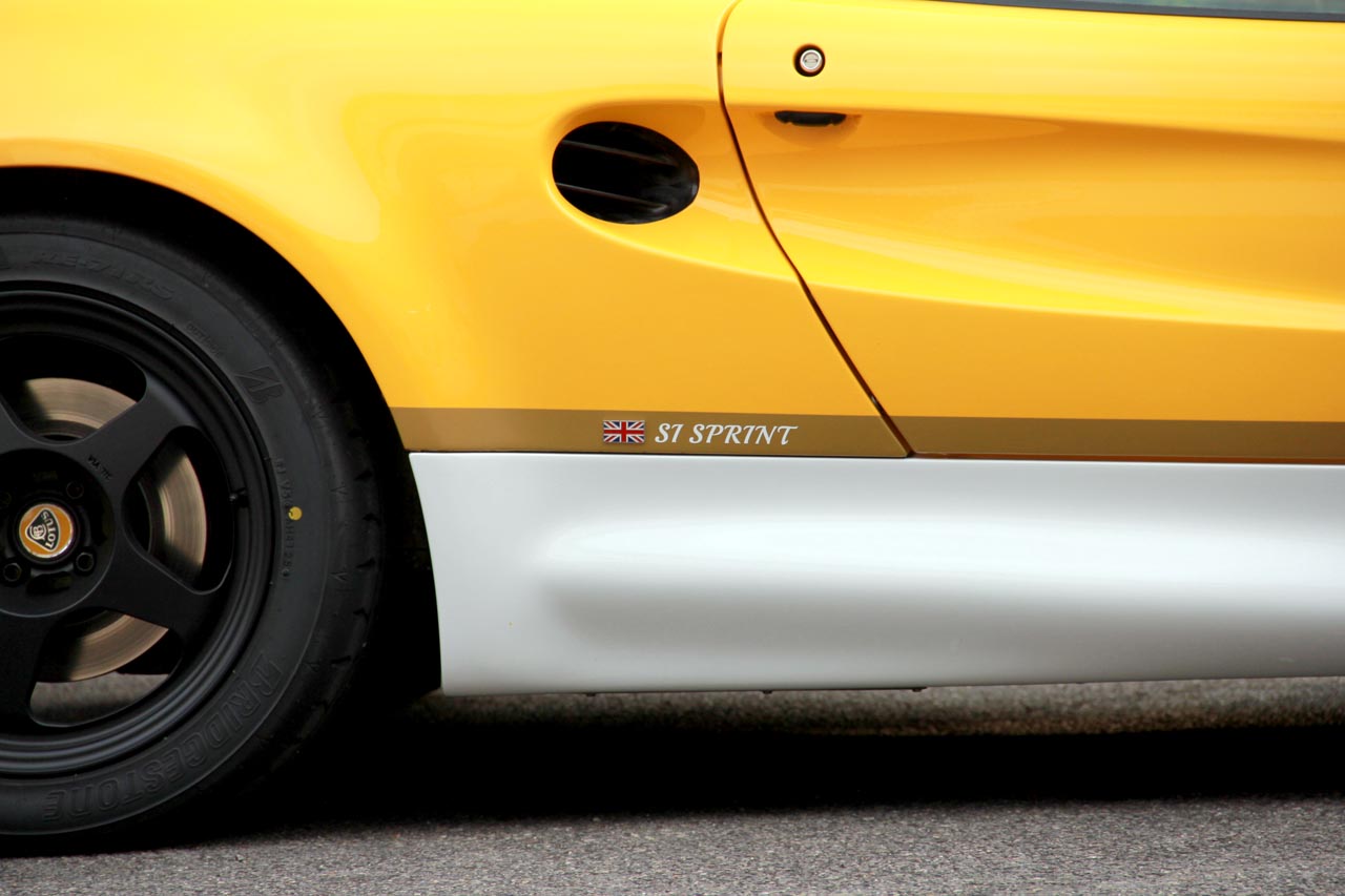 Mk1のエリーゼにはかつてType-49という往年のF1を意識した赤白ツートーンの限定車が有りましたが、この黄色に白のツートーンは元はというとエランのスプリントカラーに由来します。オーナーのI様はエキシージの限定車のEXIGE SPRINTに乗っていたこともあり、そのイメージをエリーゼで再現してみました。