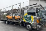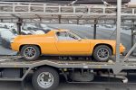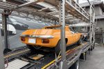 この日は神戸でセブンを引き取ってから大阪南港でヨーロッパの納車という段取りでした。一時的に2台運ぶことになりますので3台積みの積車を使用しました。