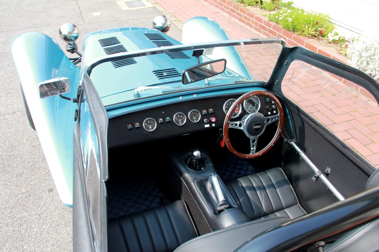 内装もクロームメッキのメーターリムやオプションのウッドステアリング、CATERHAMロゴがエンボスされたレザーシートなど雰囲気抜群です。このモデル以降、ケーターハムも大幅値上げが相次ぎこの4月24日からは170モデルが¥8,888,000から、340モデルが¥11,946,000からとなります。SIGMAエンジンモデルは今はもう選べませんが今思えば大変リーズナブルでしたね。