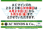 ゴールデンウイークは4月29日(土)より5月5日(金)まで休業とさせていただきます。