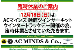12月18日(日)は鈴鹿ツインサーキット ACマインズ ウインタートラックデー開催の為臨時休業致します。 (さらに…) «臨時休業のご案内 2022…»” class=”more-link”>(さらに…) «臨時休業のご案内 2022…»